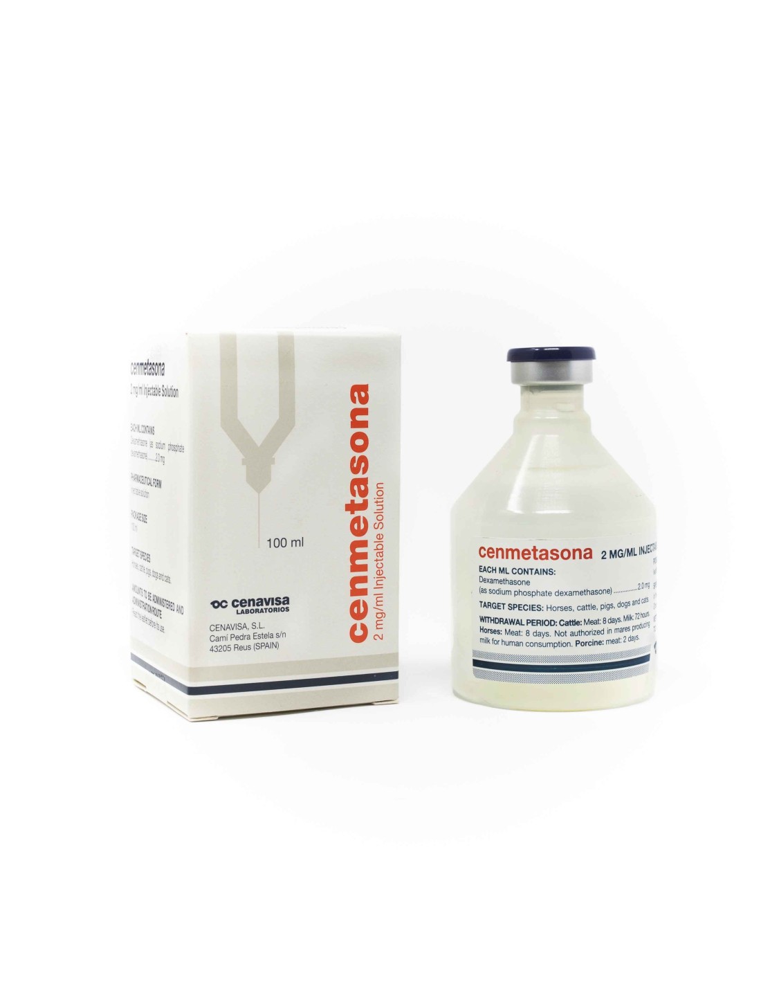 Cenmetasona 2 mg/ml es un antiinflamatorio en solución inyectable, recomendado para caballos, bovino, porcino, perros y gatos.