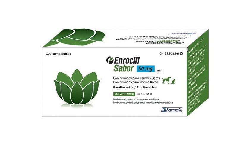 ENROCILL Sabor 50 mg 100 comp contiene enrofloxacino, una fluoroquinolona bactericida eficaz en infecciones causadas por Staphylococcus spp., E. coli, Haemophilus spp., Pasteurella spp. y Salmonella spp. y está indicada para intervenciones en los sistemas respiratorio, digestivo, urinario, piel, heridas y otitis externa en perros y gatos.