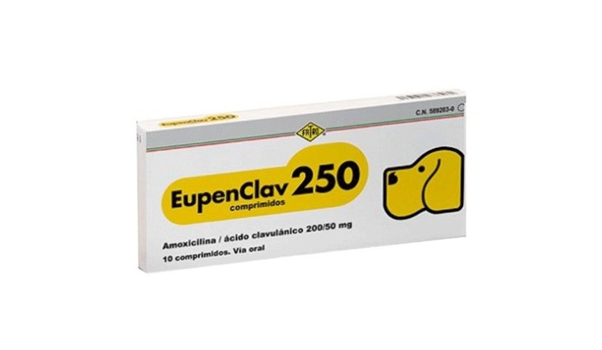 EUPENCLAV 250 COMPRIMIDOS es un antibiótico combinado (amoxicilina + clavulánico) indicado para tratar infecciones bacterianas en perros causadas por cepas productoras de beta‑lactamasas resistentes.