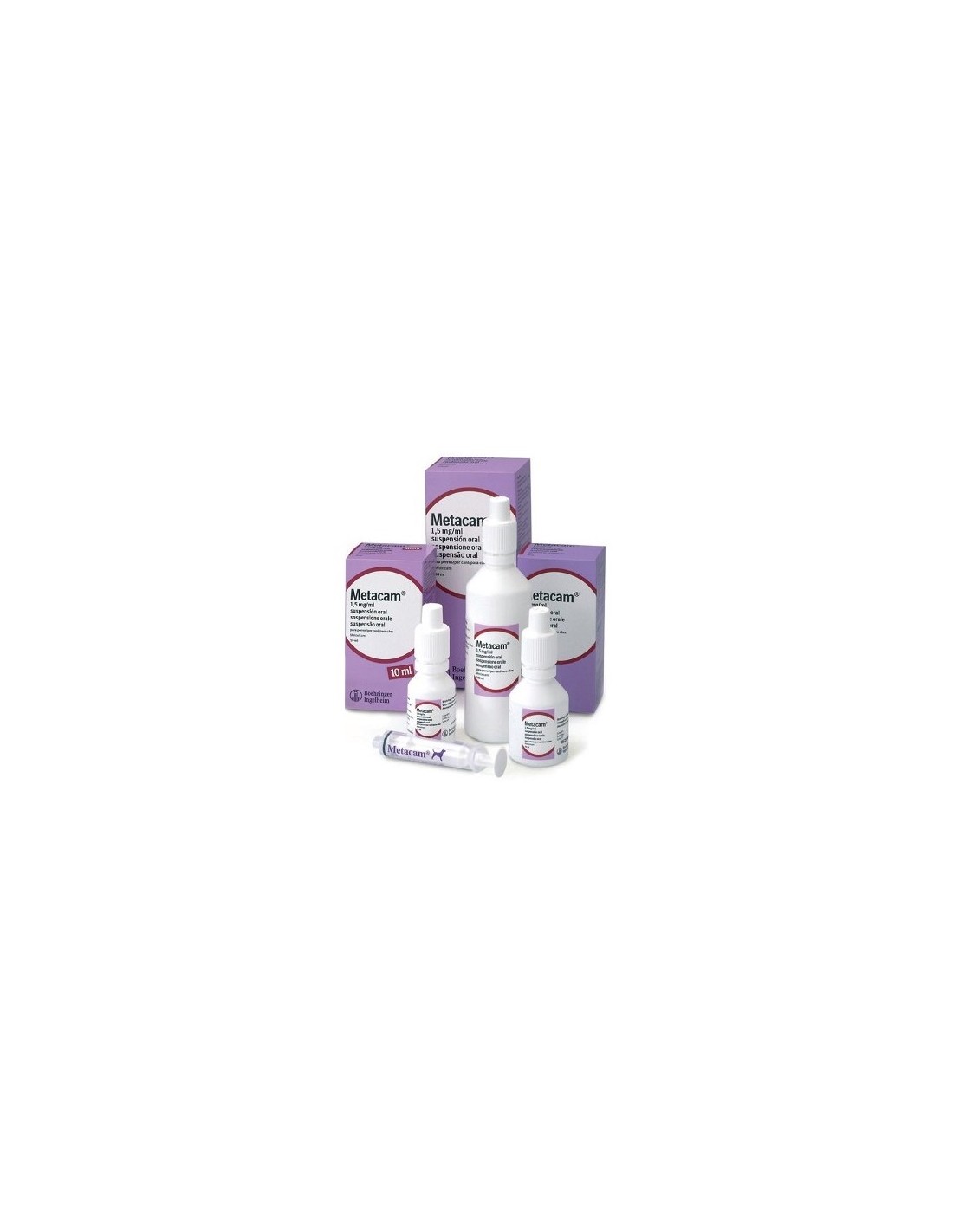 METACAM 1,5 MG/ML SUSP.ORAL 32 ML es un medicamento veterinario que contiene meloxicam, un antiinflamatorio no esteroideo (AINE) utilizado para aliviar el dolor y la inflamación en perros.