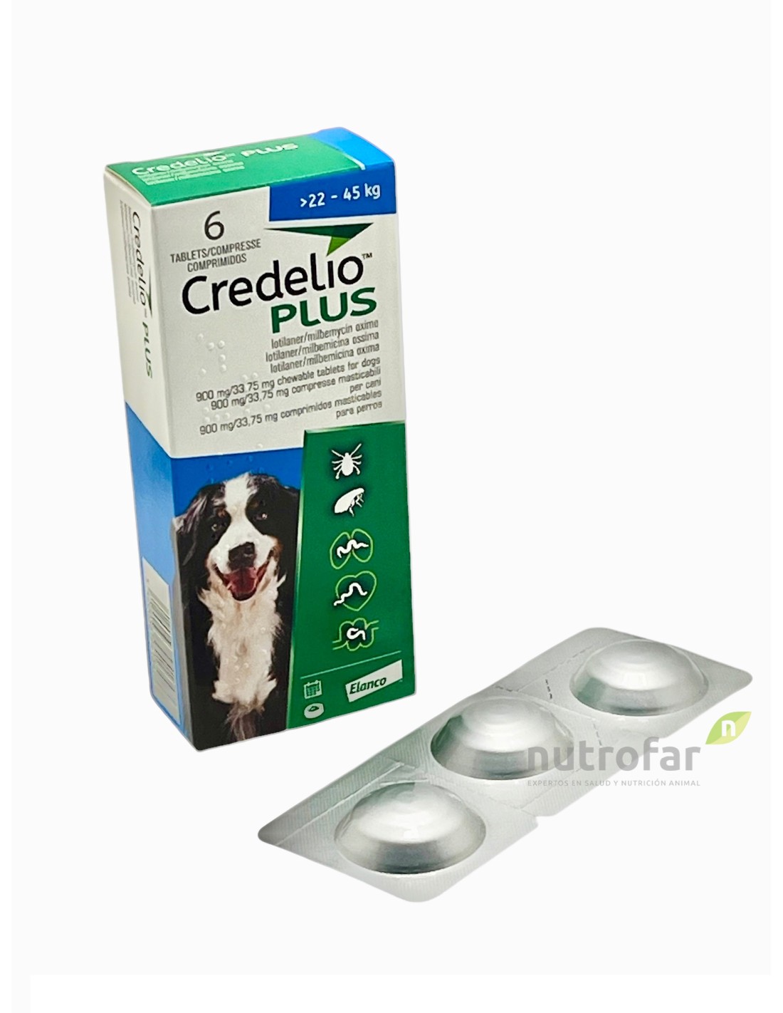 - Perros de > 22 a 45 kg: 1 comp Credelio Plus 900/33,75 mg