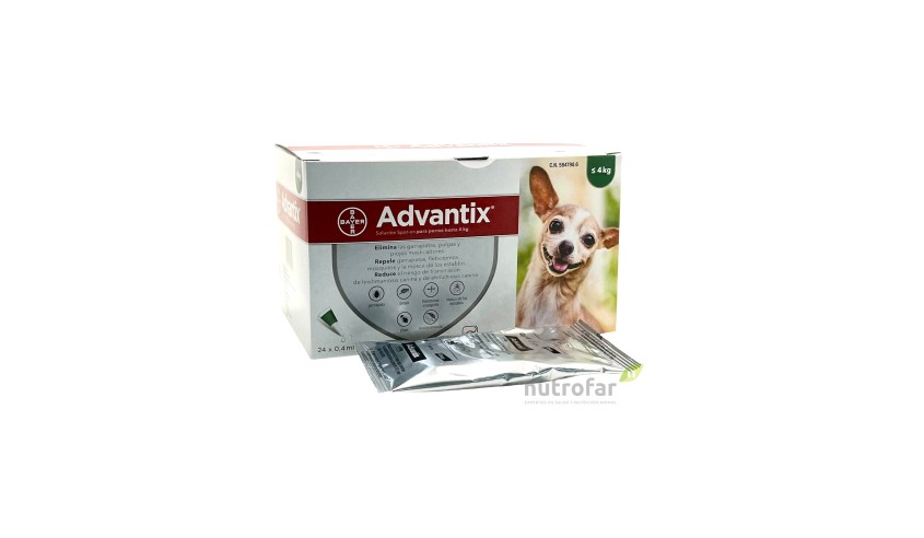 - Perros hasta 4 kg: Administrar una pipeta de Advantix Solución Spot-on para Perros hasta 4 kg.