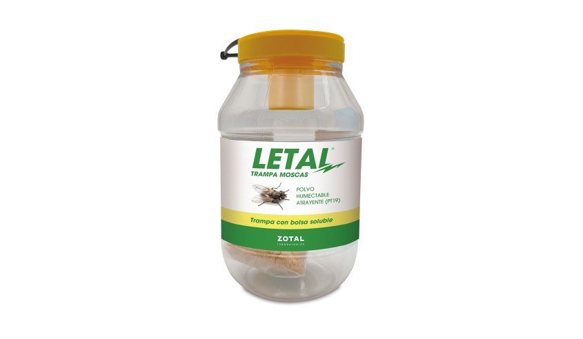 Letal Trampa Moscas, junto con su sobre atrayente de 20 g, ofrece una solución eficaz para el control de moscas en exteriores. Diseñado para el público en general, este producto atrae y elimina moscas, asegurando la protección de espacios residenciales y zootécnicos.