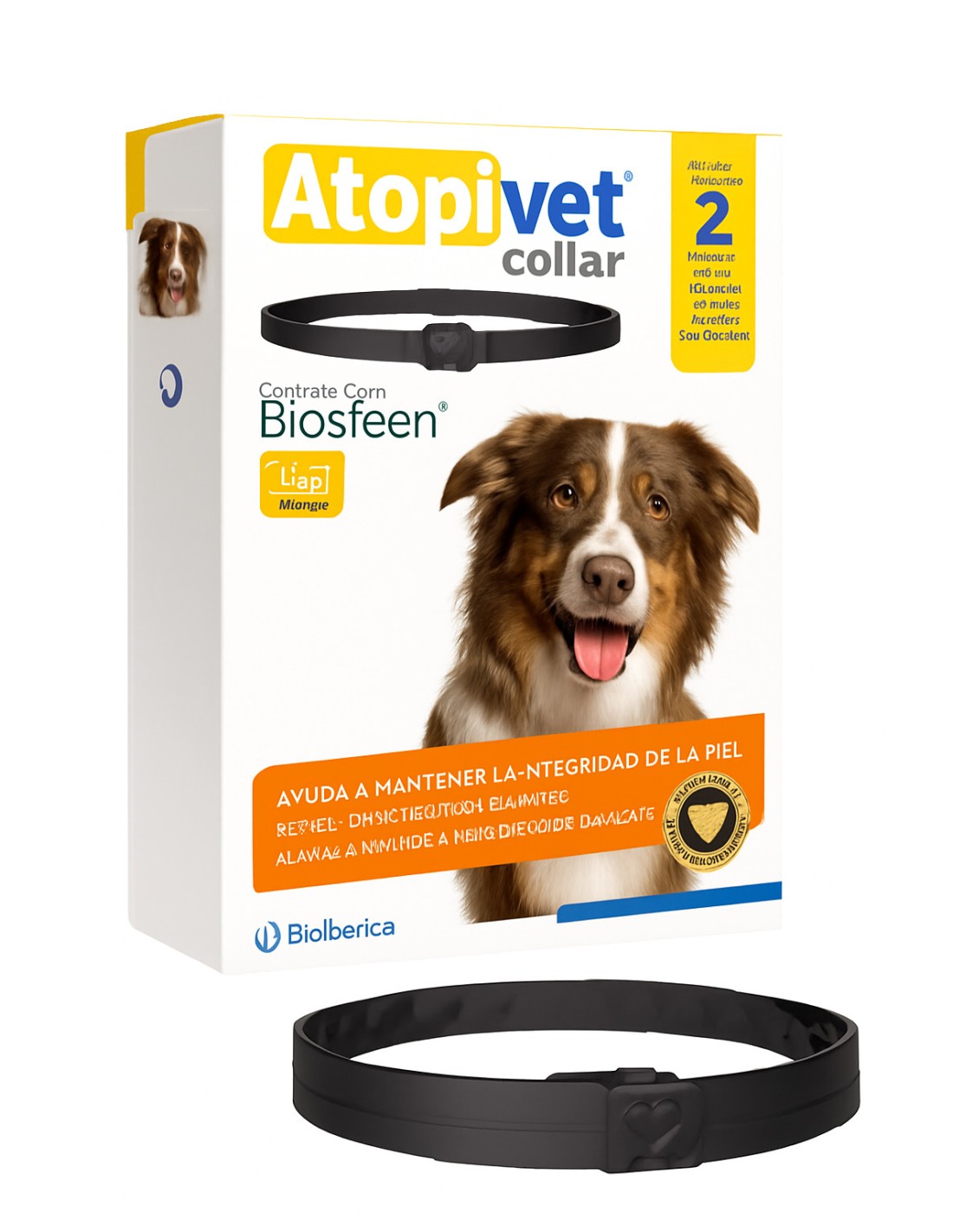 Atopivet Collar Perros >10 kg es un dispositivo dermatológico que libera de forma continua ácidos grasos esenciales, ceramidas y otros bioactivos cutáneos destinados a reforzar la barrera epidérmica y mejorar la salud de la piel en perros medianos y grandes. Es una herramienta eficaz de apoyo en condiciones como dermatitis atópica, piel seca o irritada, prurito recurrente o sensibilidad dermatológica.