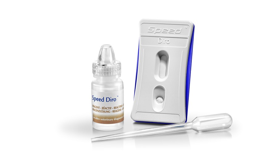 El test Speed Diro está indicado para la detección rápida de antígenos de Dirofilaria immitis en perros y gatos. Es especialmente útil en áreas endémicas y para el diagnóstico precoz de la infección.