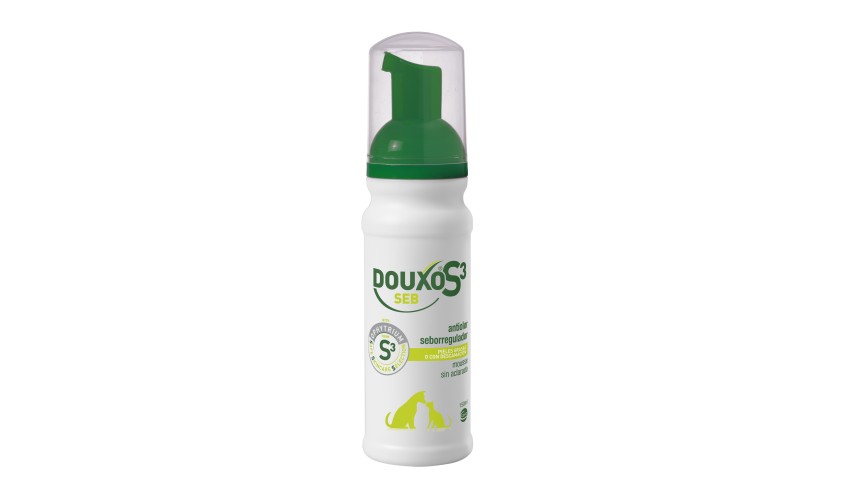 - Espuma anticaspa para perros y gatos: la caspa en los animales de compañía se debe a un aumento de la rapidez de renovación de las células de la piel, que da lugar a la formación de escamas que quedan adheridas al pelo del animal y no se eliminan de forma espontánea. Se ha demostrado que Douxo S3 Seb reduce significativamente la caspa durante los ensayos realizados en animales de compañía con piel escamosa.