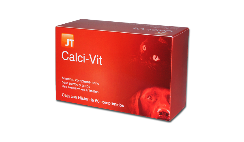Calci-Vit es un alimento complementario en formato de comprimidos diseñado para perros y gatos. Cada comprimido contiene fosfato dicálcico, vitaminas A, D3, E y otros minerales esenciales para la salud de las mascotas.