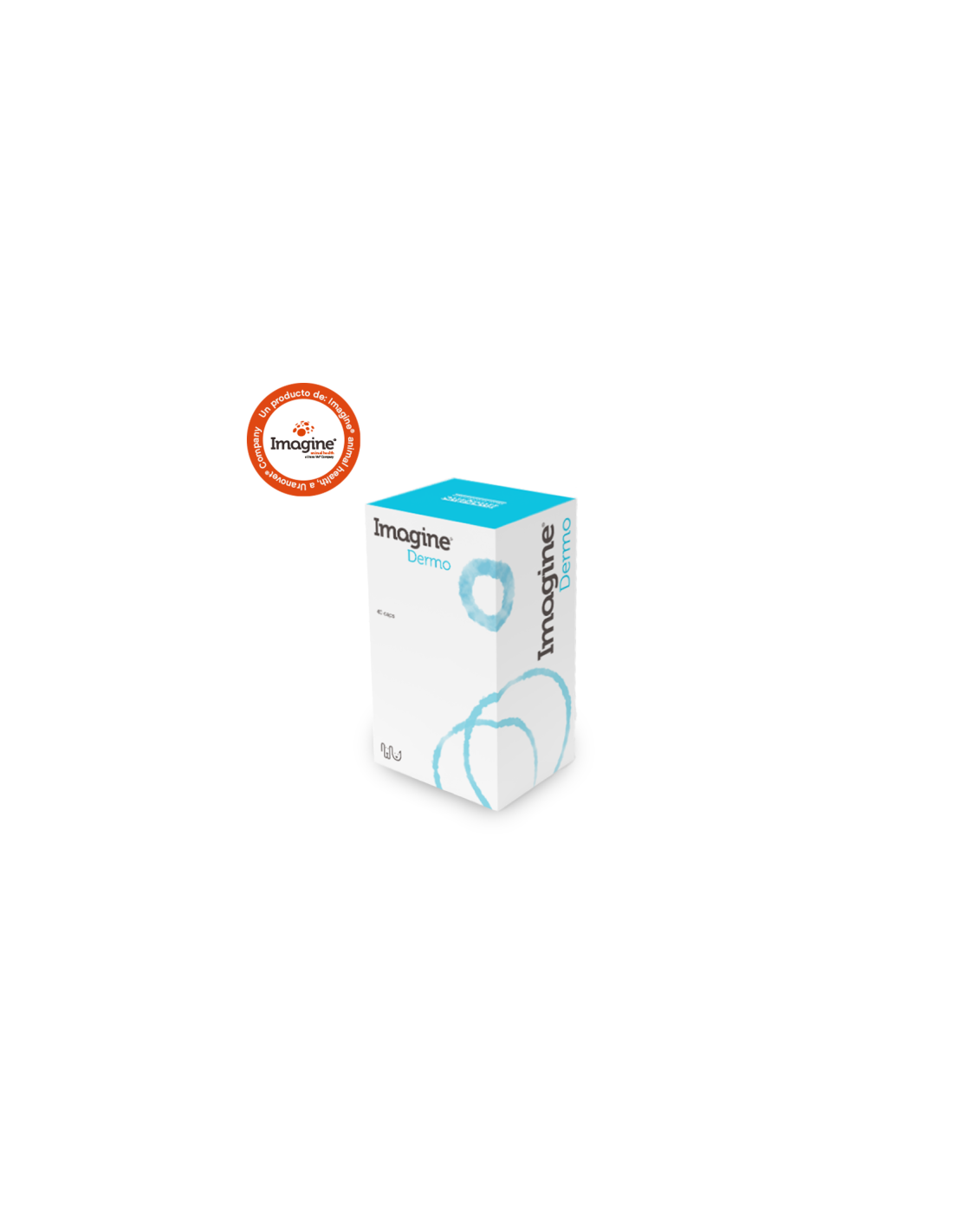 El objetivo de Imagine Dermo es mantener la función dérmica en caso de dermatosis y pérdida excesiva de pelo. Estas cápsulas tienen un alto contenido de ácido eicosapentaenoico (EPA) y ácido docosahexaenoico (DHA), ácido linoleico (LA) y productos de fermentación como Bifidobacterium lactis y Lactobacillus rhamnosus.