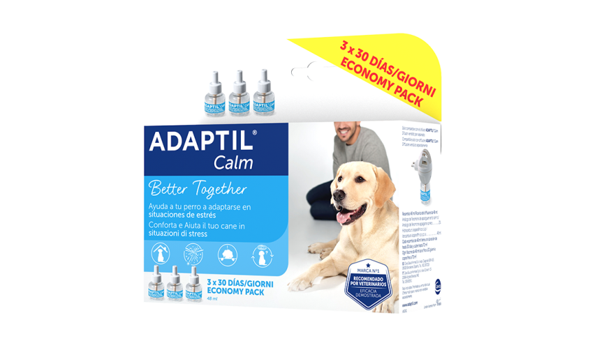 Adaptil Calm Pack 3 Recambios para 3 meses de duración es una feromona de apaciguamiento canino en difusor