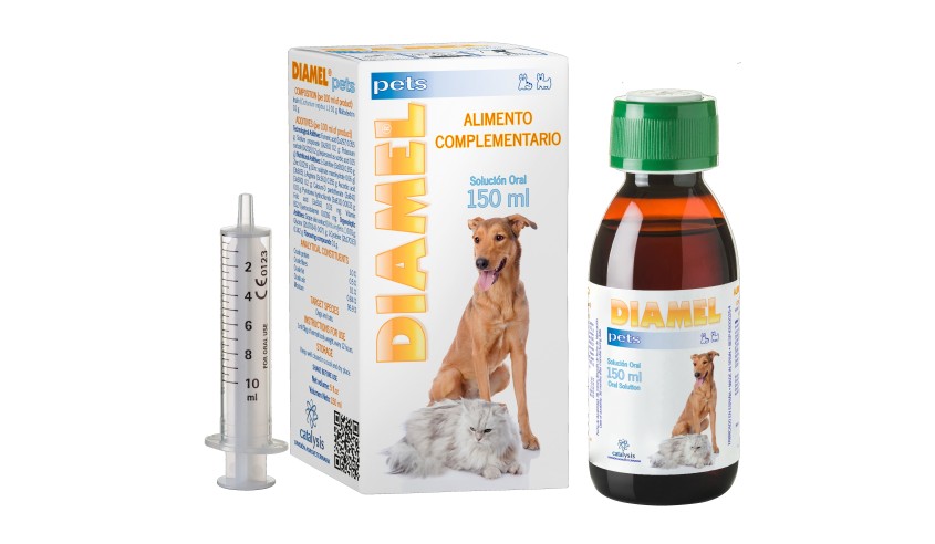 Diamel Pets 150 Ml es un preparado nutricional a base de aminoácidos, vitaminas y oligoelementos que ayudan a normalizar los niveles de glucosa, colesterol y ácido úrico en la sangre. Este producto ha sido desarrollado a partir de investigaciones científicas que confirman el uso de dietas ricas en antioxidantes para controlar el estrés oxidativo en casos de diabetes.