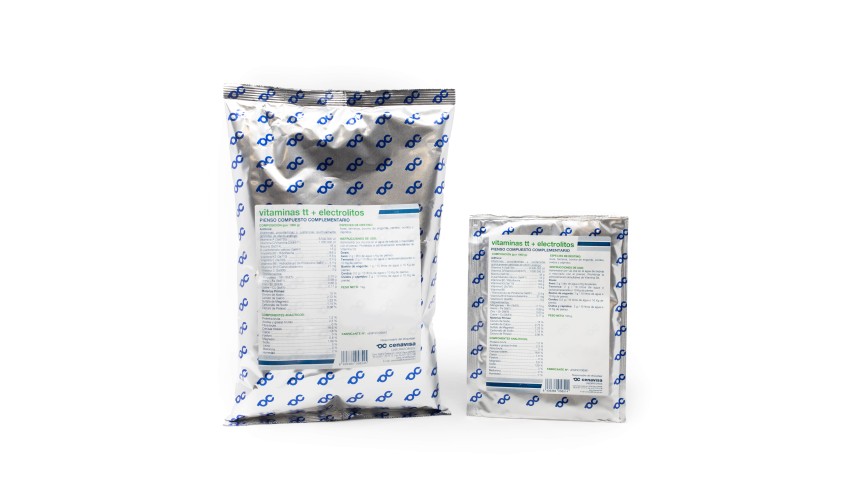 - Fácil administración: Al ser un polvo hidrosoluble, se disuelve fácilmente en agua o se mezcla con alimentos, facilitando su administración diaria y asegurando que los animales reciban una dosis uniforme y constante de nutrientes.