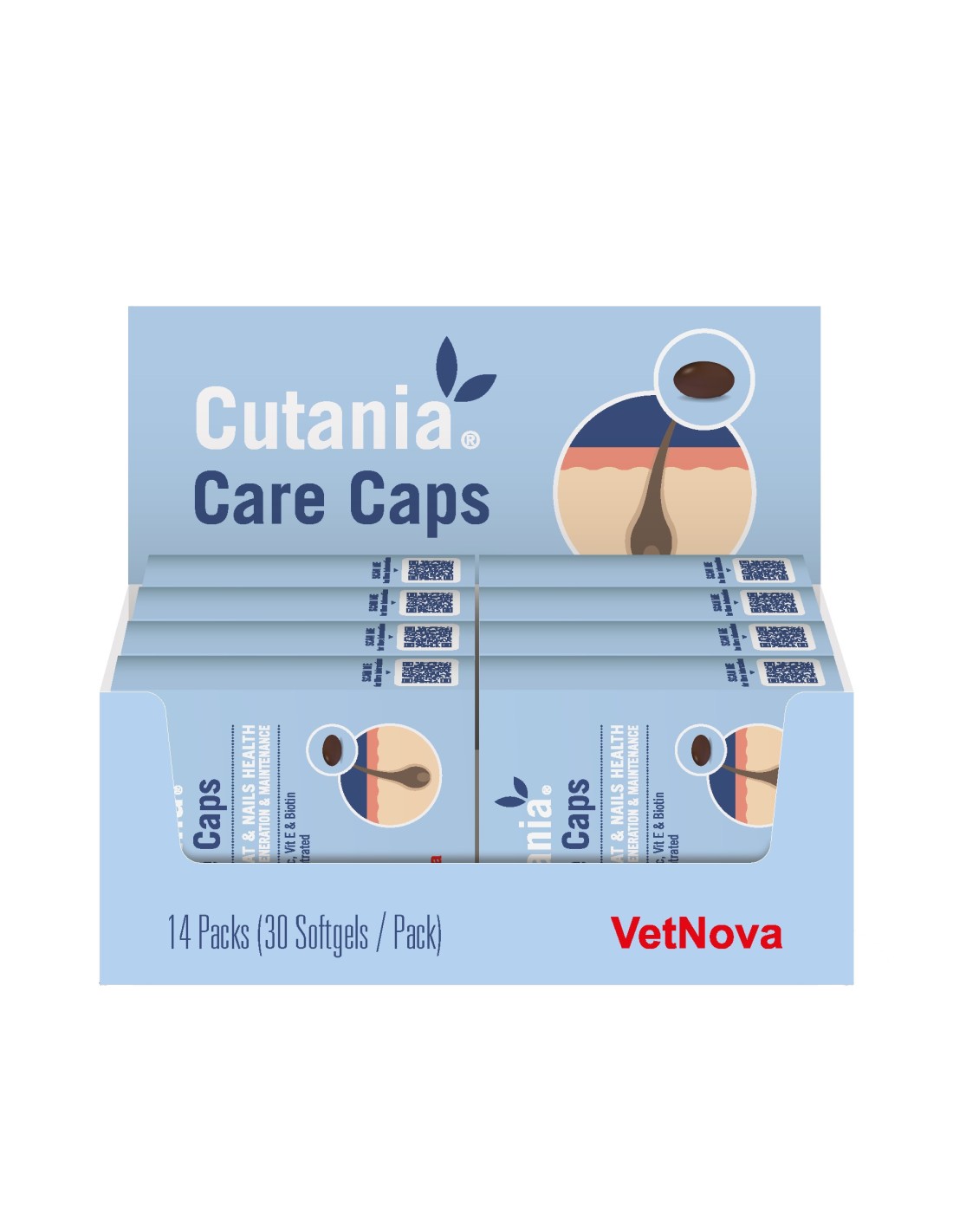 Cutania Care Caps es un suplemento nutricional avanzado, diseñado para el cuidado integral de la piel y el pelo de perros y gatos. Este producto, desarrollado en España, combina 12 componentes claves en una fórmula única que incluye ácidos grasos Omega 3, 6, 9, Zinc, Selenio, Biotina y Vitaminas.