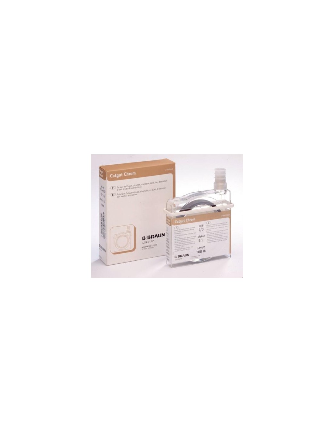 Cassette Catgut Chrom 3 - 50 m es una sutura natural absorbible diseñada para procedimientos veterinarios que requieren una absorción a corto plazo. Fabricada a partir de colágeno de serosa bovina, garantiza calidad y seguridad, estando libre de BSE (Encefalopatía Espongiforme Bovina).