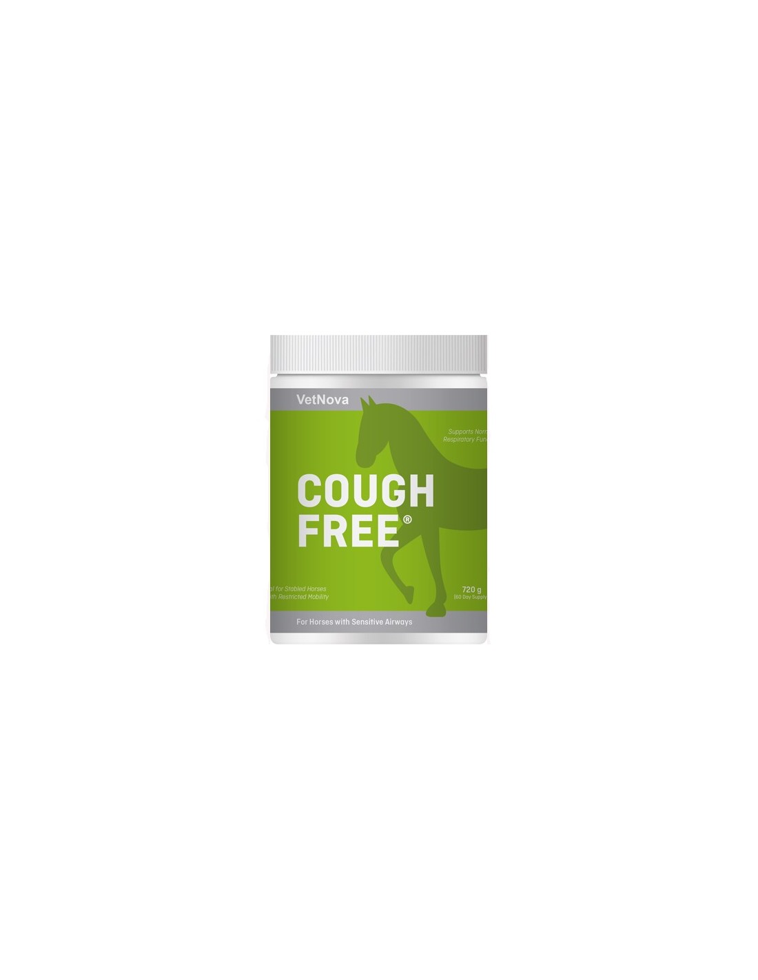 Cough Free es una mezcla única de ingredientes naturales como jengibre, helenio, kelp, alholva y genciana, diseñada para mantener la función respiratoria en caballos.