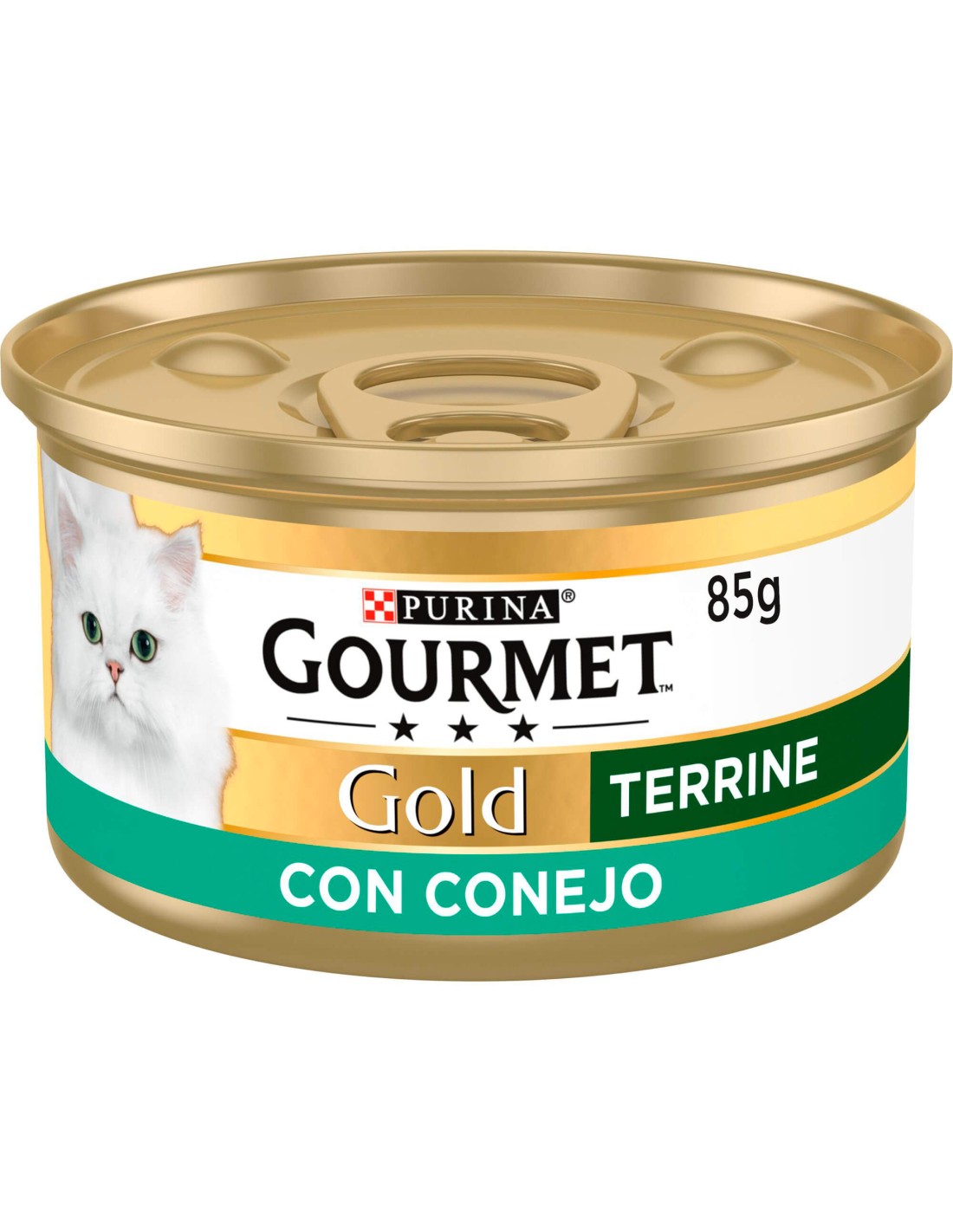 PURINA® GOURMET® Gold Terrine lata 85g. Comida húmeda para gato. Trocitos finamente cortados de Conejo con una ligera y apetitosa textura.