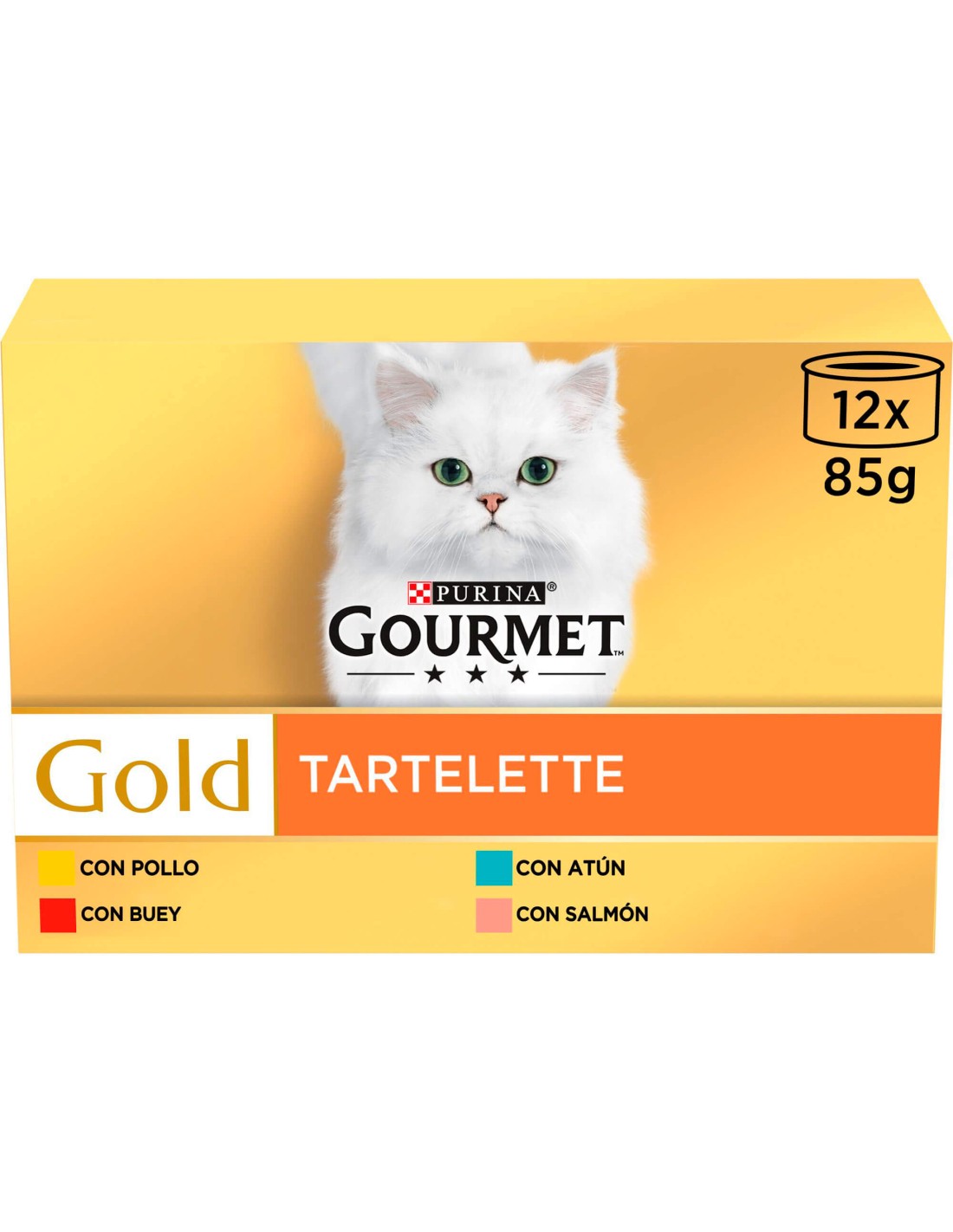 PURINA® GOURMET® Gold Tartelette Pack 12 latas de 85g. Comida húmeda para gato. Exquisito pastel para deleitar el paladar refinado de tu gato.
