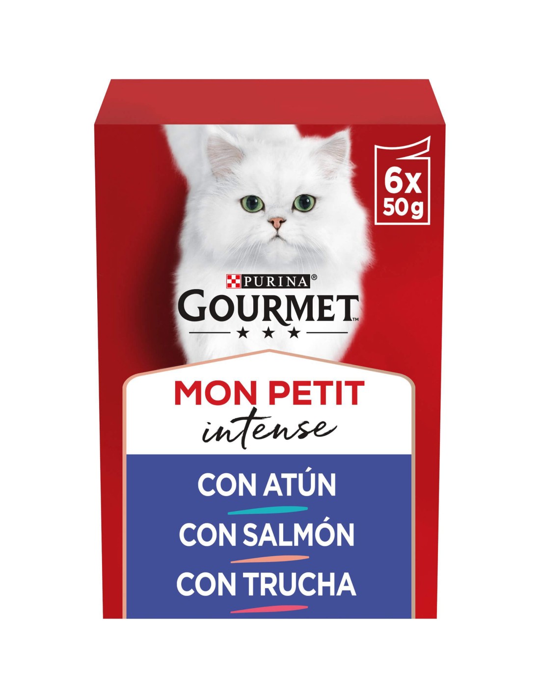 PURINA® GOURMET® Mon Petit 6 sobres de 50g. Comida húmeda para gato con selección de Pescados. Exquisitas recetas y amplia variedad de sabores.