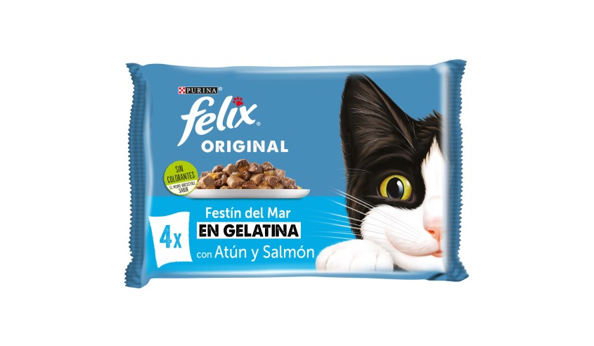 PURINA® FELIX® Original 4 sobres de 85g. Comida húmeda para gato. Tiernos trocitos de pescados en gelatina.