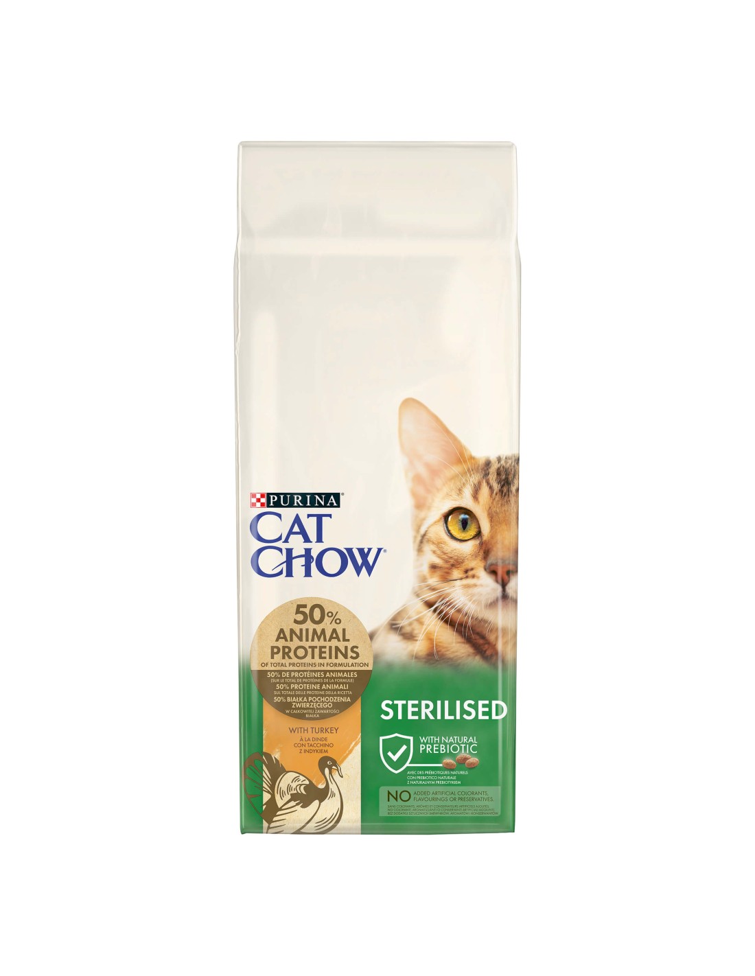 Gatos Seca CAT CHOW STERILISED POLLO 1.5KG 012334 PURINA CAT CHOW STERILIZED POLLO 1,5kg es un pienso para gatos adultos esterilizados con tendencia al sobrepeso, elaborado con ingredientes naturales Vista