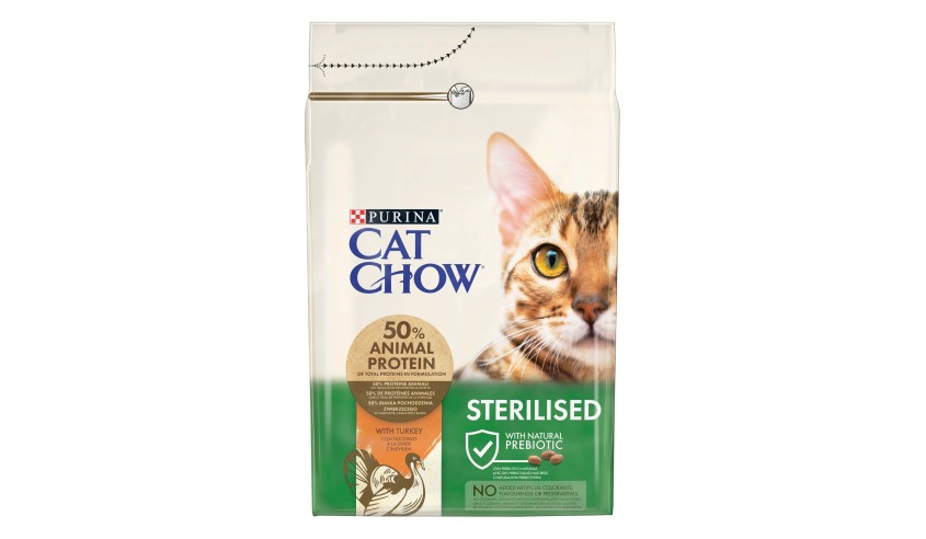 PURINA CAT CHOW con pavo está formulado con más del 50% de proteína animal y con ingredientes naturales como guisantes, zanahorias y cereales integrales. Incluye achicoria, un prebiótico natural que mejora la digestión. 100% completo y equilibrado, cubre las necesidades nutricionales de tu gato cada día.