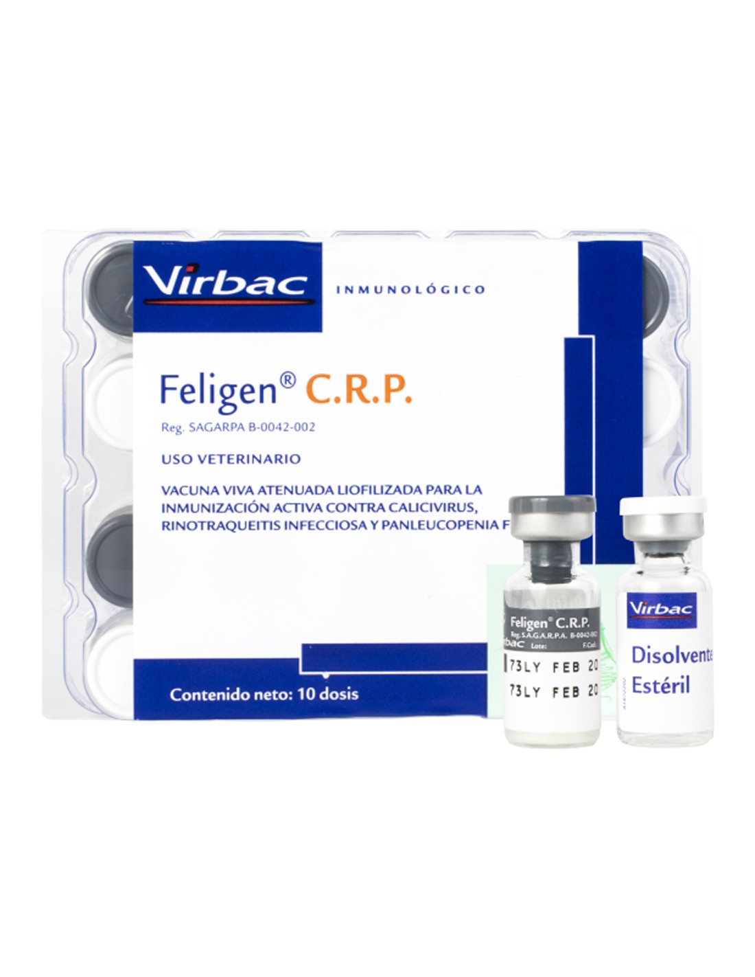 Feligen CRP 10 dosis es una vacuna liofilizada y disolvente para suspensión inyectable para gatos, diseñada para proteger contra las enfermedades más comunes en felinos.