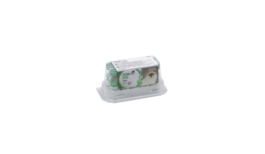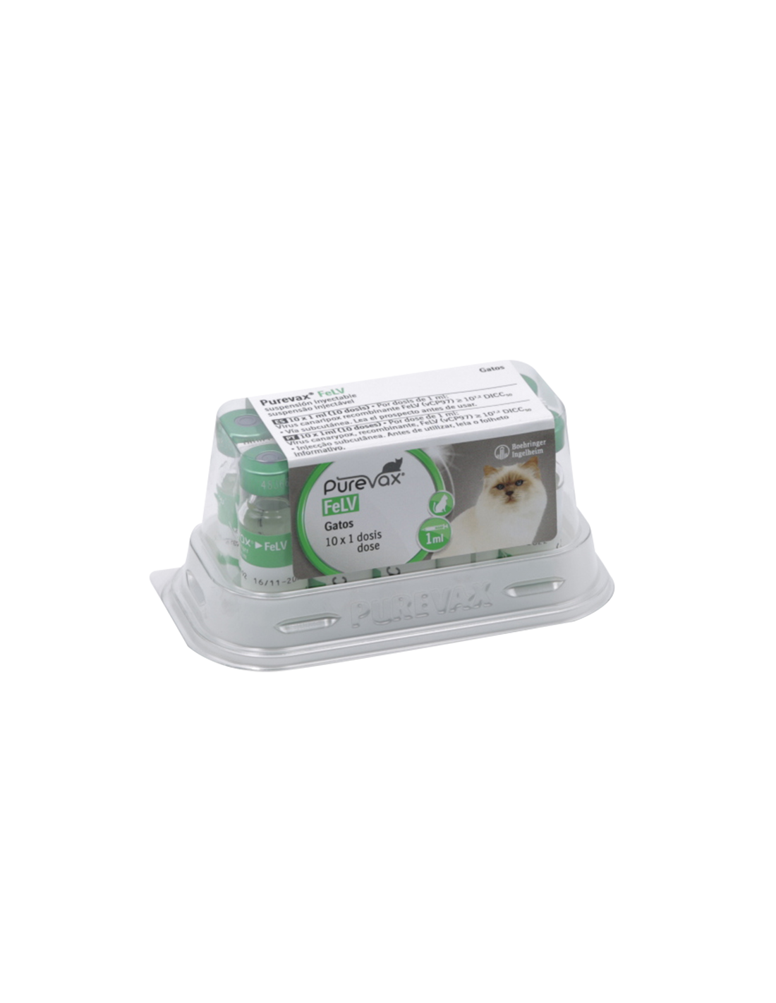 La vacuna Purevax Felv 10 Ds es una suspensión inyectable que contiene el virus canaripox recombinante FeLV (vCP97) como sustancia activa. Esta vacuna está indicada para la inmunización activa de gatos de 8 semanas y mayores contra la leucemia felina, con el objetivo de prevenir la viremia persistente y los signos clínicos de la enfermedad relacionada. La composición cualitativa y cuantitativa de cada dosis de 1 ml o 0,5 ml de la vacuna es de 107,2 DICC5011 dosis infecciosa cultivo celular 50%.