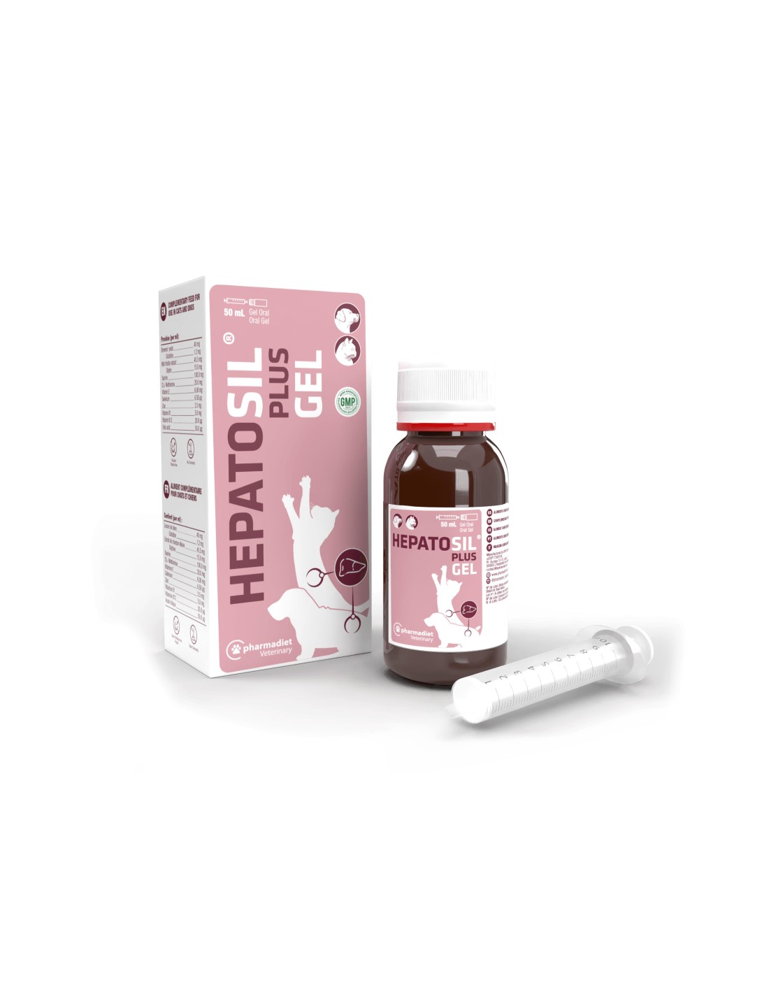 HEPATOSIL PLUS Gel 50 ml es un suplemento nutricional a base de colina, silimarina (extracto de cardo mariano) y metionina, diseñado para apoyar el correcto funcionamiento y regeneración hepática en perros y gatos. Su fórmula en gel facilita su administración oral clara para mascotas difíciles.