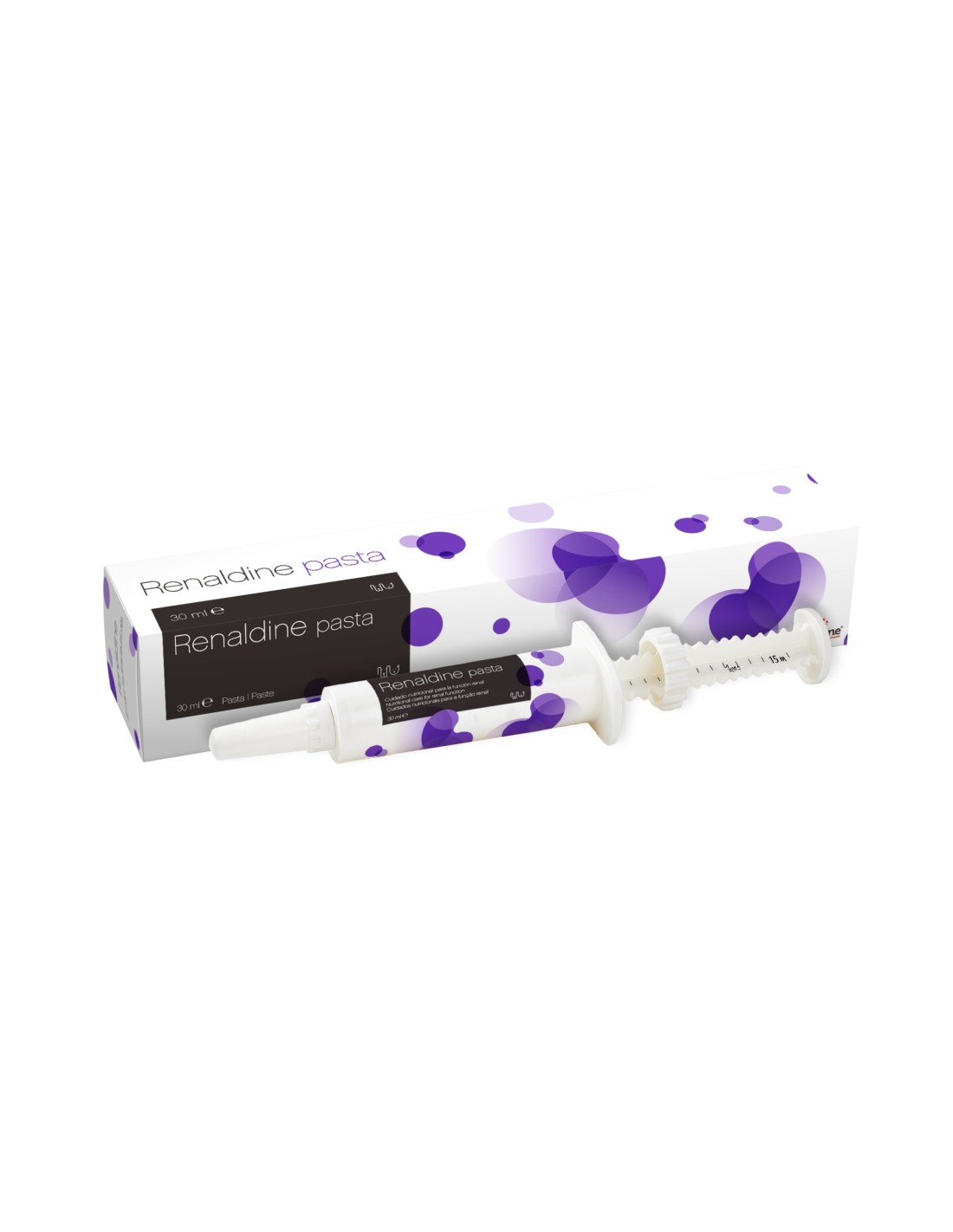 Renaldine Pasta 30 ml es un complemento nutricional renal desarrollado para perros y gatos, destinado a contribuir al mantenimiento de la función renal y al manejo del estrés renal. La pasta es altamente palatable, facilitando su administración incluso en animales exigentes.