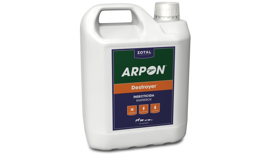 Además, las propiedades de repelencia de Arpon Destroyer brindan una protección efectiva contra las picaduras de moscas y mosquitos en animales alojados en áreas tratadas. Su fórmula avanzada permite una acción rápida tanto por ingestión como por contacto, gracias a la lipofilia de sus ingredientes activos que se absorben rápidamente en la cutícula rica en lípidos del insecto. El notable efecto knockdown de Arpon Destroyer provoca una excitación extrema en los insectos, llevándolos a una rápida parálisis y muerte subsiguiente.