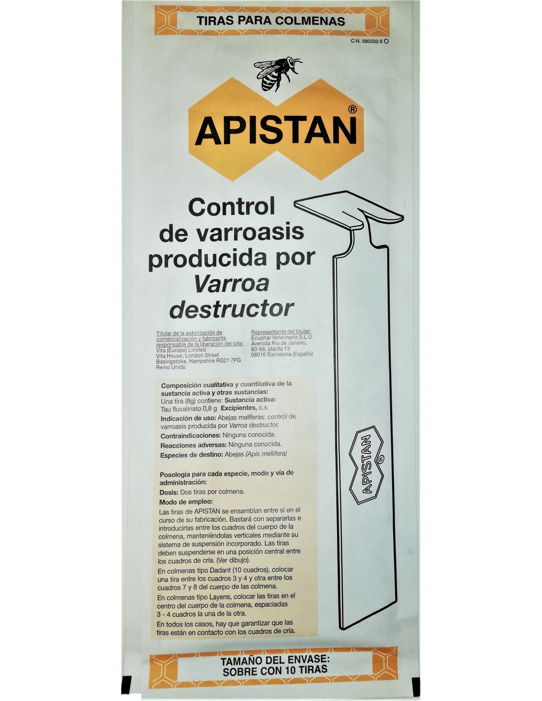 Apistan se presenta en forma de tiras diseñadas especialmente para su uso en colmenas, asegurando una aplicación fácil y efectiva.