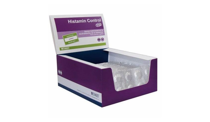 HISTAMIN CONTROL 300 COMP BLISTER 30X10 es un complemento nutricional dietético para perros y gatos, diseñado para reducir la intolerancia a ingredientes y nutrientes, así como para modular la actividad del sistema inmunológico. Su fórmula natural ayuda a disminuir la intensidad de las reacciones alérgicas y posee efecto antiinflamatorio.