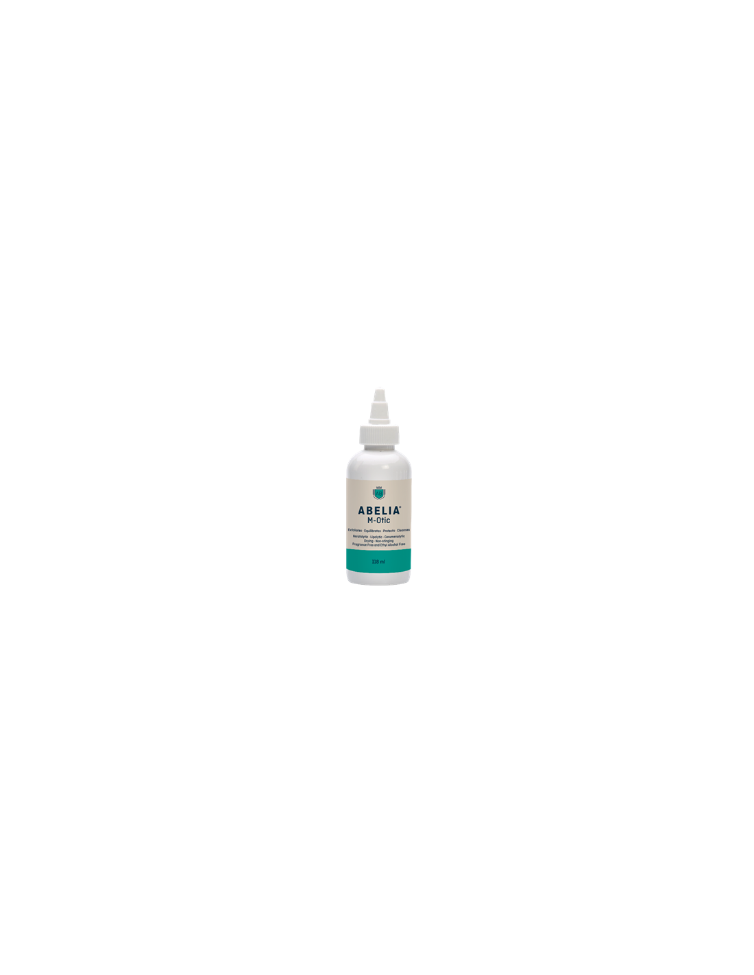 Abelia M-Otic 118 ml es una solución ótica acuosa sin fragancia, con pH ácido y propiedades secantes, queratolíticas y lipolíticas. Está diseñada para el cuidado del conducto auditivo externo y del pabellón auricular, ayudando a mantener el equilibrio microbiano natural de los oídos y a proteger la barrera cutánea, especialmente en animales con predisposición a otitis recurrentes.