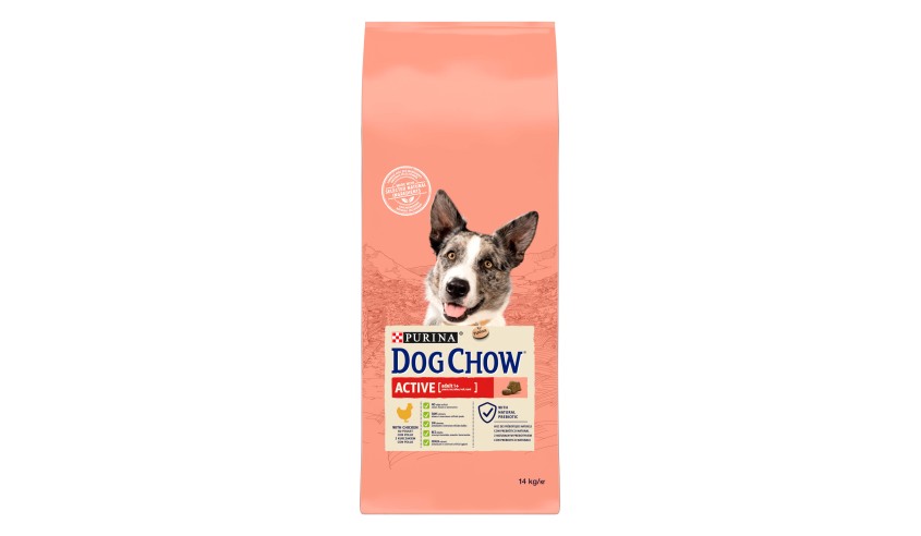 Purina®DOG CHOW® Adulto Active es un pienso para perros activos y de trabajo con altos niveles de proteína y grasa, su fórmula apoya la salud muscular