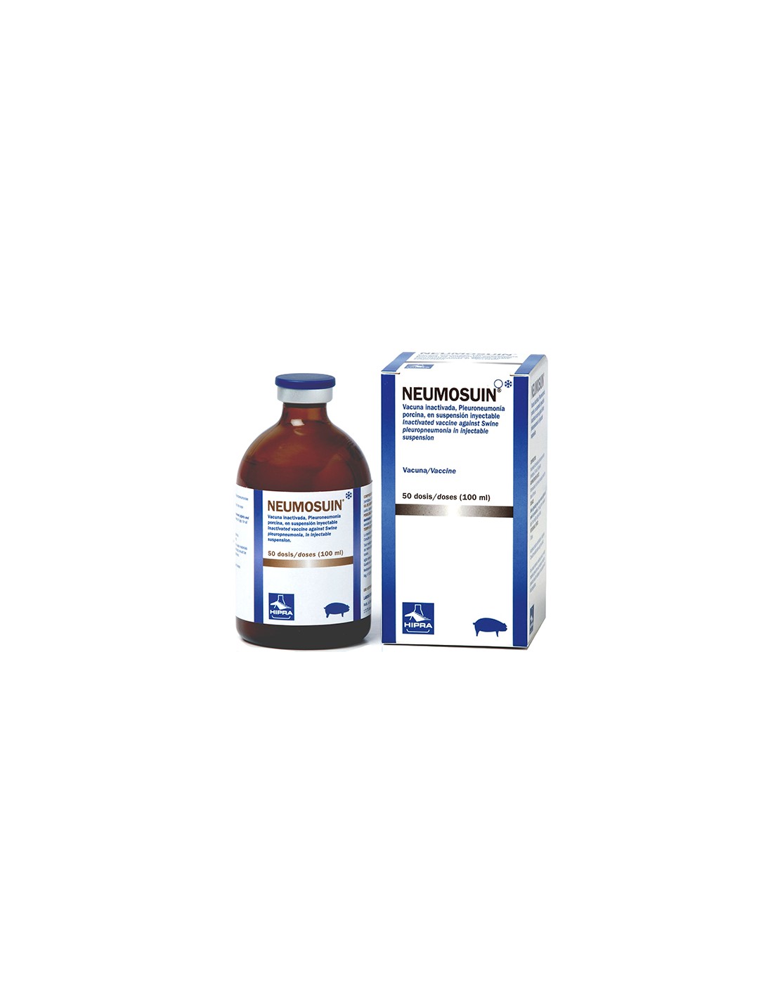 Neumosuin 50 dosis ofrece una solución inyectable para la inmunización activa del ganado porcino, previniendo la infección causada por Actinobacillus pleuropneumoniae, responsable de la pleuroneumonía porcina.