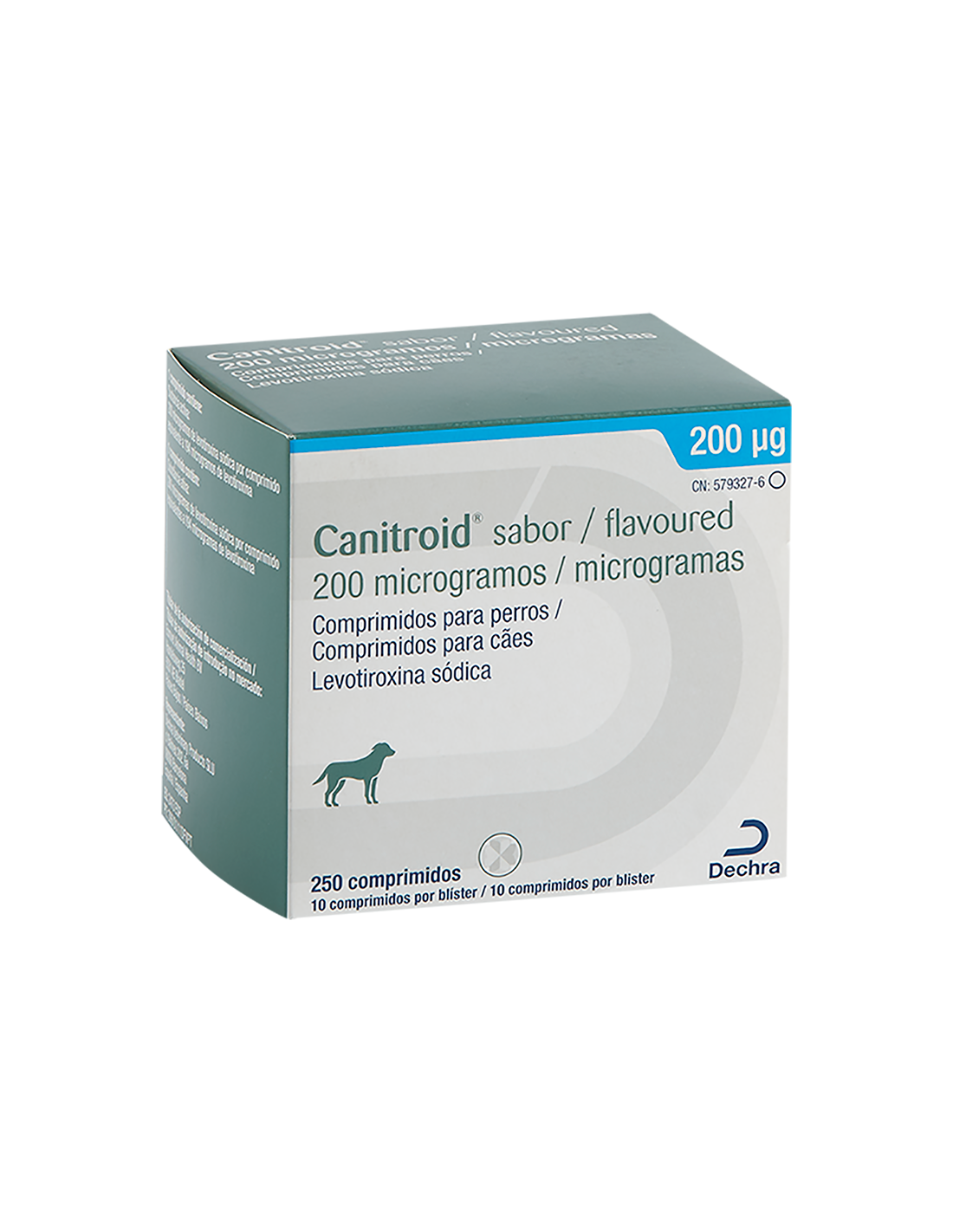- Canitroid Sabor 200 µg: Contiene Levotiroxina sódica 200 µg por comprimido.