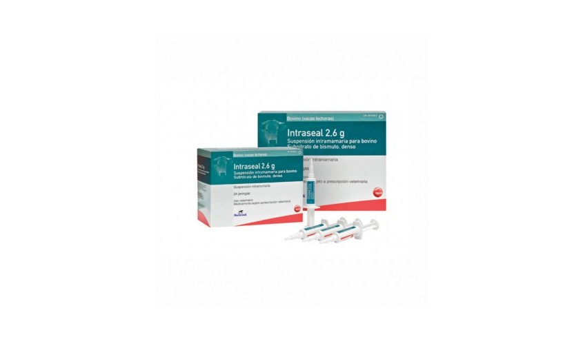 Intraseal 2,6 g 60 jeringas es un medicamento veterinario intramamario diseñado para crear un sello físico en los cuarterones de la ubre durante el periodo de secado, impidiendo la entrada de bacterias y reduciendo riesgo de mastitis. No actúa como antibiótico; su función es barrera. (Syva)